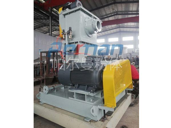 負壓空氣研磨系統(tǒng)的設(shè)備積垢問題經(jīng)常是討論的焦點。設(shè)備的清洗,特別是輸送風機的清洗過于耗時。此外,在開機和關(guān)機過程中風機葉輪上的積垢還可能剝落,導(dǎo)致風機的振動及其運轉(zhuǎn)狀態(tài)的振蕩。因此可考慮由負壓流程改為正壓流程。在新的工作模式下風機安裝在分級磨之前,將工藝空氣壓入研磨系統(tǒng)。這種工作模式的優(yōu)點是研磨后的碳酸氫鈉不通過風機運輸,完全避免了風機的積垢問題。此外風機的耗電也有所降低,使經(jīng)營成本更低,但是對設(shè)備的密封性能提出了更高的考驗,無論是設(shè)備的設(shè)計結(jié)構(gòu)、加工精度及配合都有嚴格的要求,設(shè)備的造價成本也會更高。