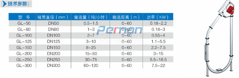 在密閉管道內(nèi),以鏈片為傳動(dòng)構(gòu)件帶動(dòng)物料沿管道運(yùn)動(dòng)。當(dāng)水平輸送時(shí),物料顆粒受到鏈片在運(yùn)動(dòng)方向的推力,就隨鏈片向前運(yùn)動(dòng),形成穩(wěn)定的料流;當(dāng)垂直輸送時(shí),管內(nèi)物料顆粒受鏈片連續(xù)向上的推力,阻止了物料下滑,并產(chǎn)生了橫向側(cè)壓力,增強(qiáng)了物料的內(nèi)摩擦力,當(dāng)物料間的內(nèi)摩擦力大于物料與管內(nèi)壁外摩擦力及物料自重時(shí),物料就隨鏈片向上移動(dòng),形成連續(xù)料流。粉體物料可在三維空間內(nèi)沿封閉管道直線(xiàn)移動(dòng)或改變方向;水平輸送距離可達(dá)60米,垂直輸送距離可達(dá)到30米。